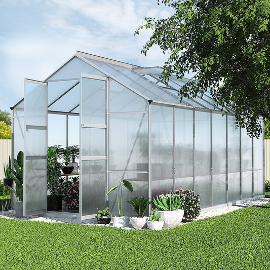 Greenhouse | Aluminium Polycarbonate Green House Garden | Greenfingers | 3.0x2.5M | Silver