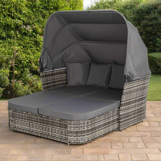 Outdoor Daybed Rattan Day Bed Sun Lounge Set Grey